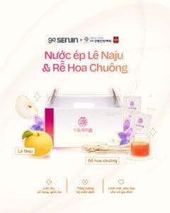 Nước Lê Naju & Rễ Hoa Chuông Kyongdong là sự kết hợp hài hòa giữa hai nguyên liệu tự nhiên được ưa chuộng trong y học cổ truyền Hàn Quốc, mang đến thức uống thanh mát, dễ uống và tốt cho sức khỏe hô hấp.